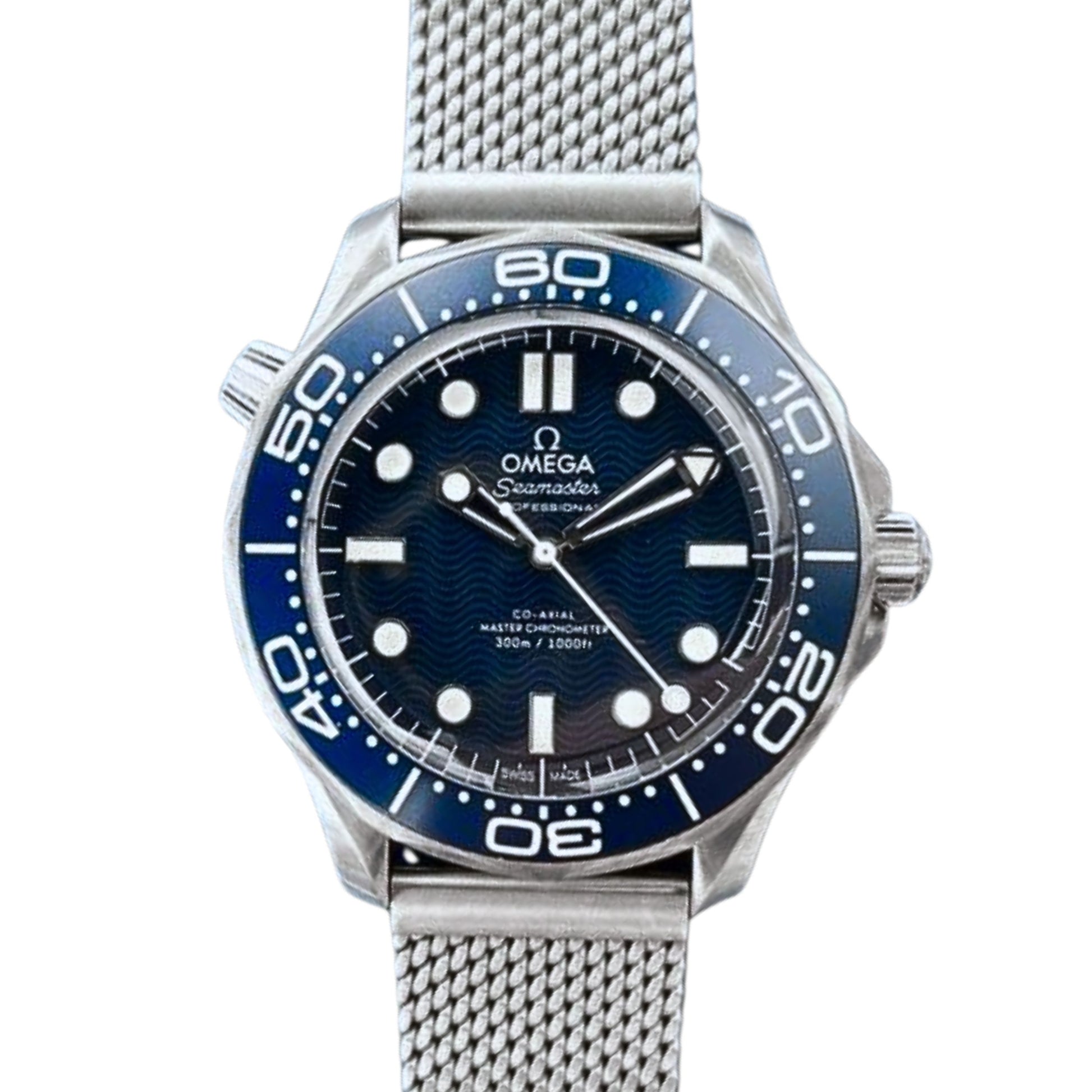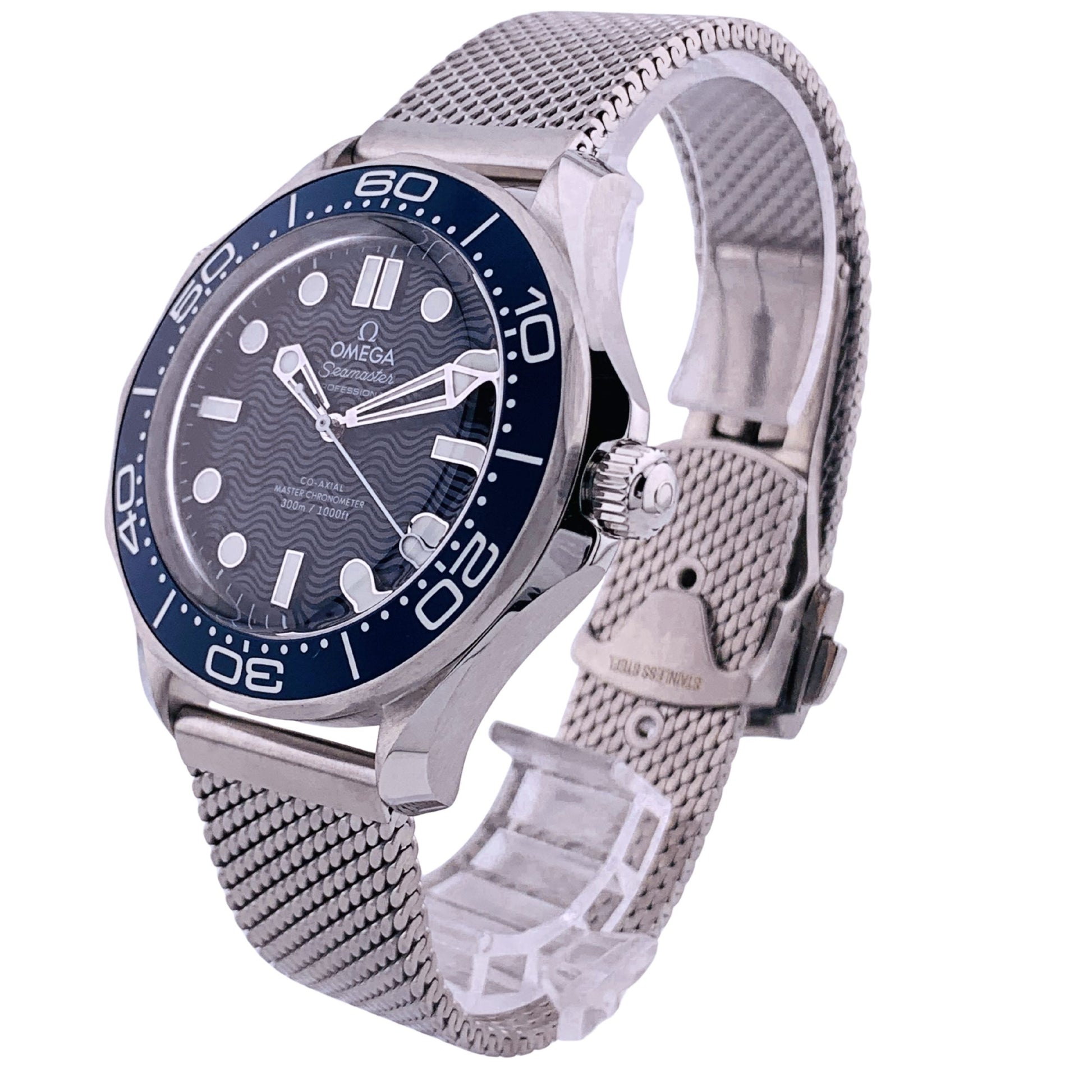 Launched in 2022 to mark the 60th anniversary of James Bond and inspired by the original Seamaster Diver 300M worn by the British secret agent in the 1995 film GoldenEye, this 42 mm stainless steel Seamaster Diver 300M features a blue anodized aluminum dial with a laser-engraved wave pattern. The commemorative number "60" replaces the traditional inverted triangle on the diving scale.