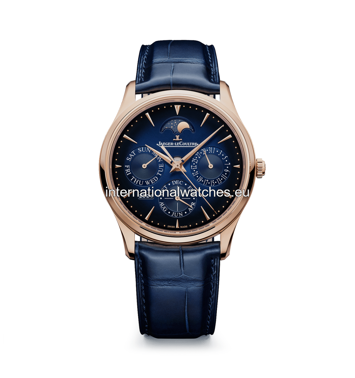 Part of the Master Ultra Thin Collection, this complication watch captivates with the finesse of its polished pink gold case and the depth of color of its dial. An intense midnight blue that brings out every detail of the Master Ultra Thin Perpetual Calendar: moon phase at noon, applied hour-markers and JL logo, polished and satin-finished golden hands, sub-dials with a double opaline finish on the outside and azure on the inside... the sapphire crystal back of this perpetual calendar reveals its movement, Calibre 868, manufactured, decorated and assembled within the Manufacture, offering 70 hours of power reserve.