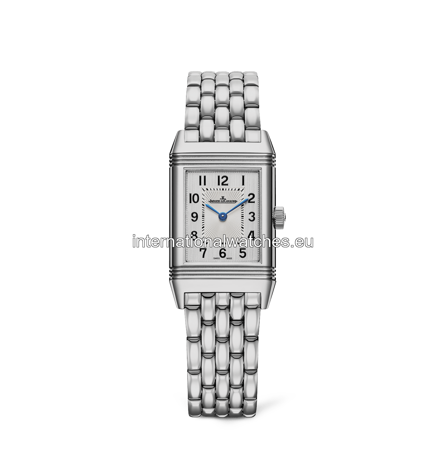 The Reverso Classic Small watch joyfully brings time to life for whoever wears it on their wrist. Emanating finesse, its small size confers a charming appeal that is filled with character. Admire the beauty of its stainless steel bracelet as it caresses the skin with five rows of links that perfectly match the lugs of the case. On the other side of its silver satin and guilloché dial hides a customizable reverse. A blank page upon which you can write in your own words, the initials of your name, or of the man in your life...