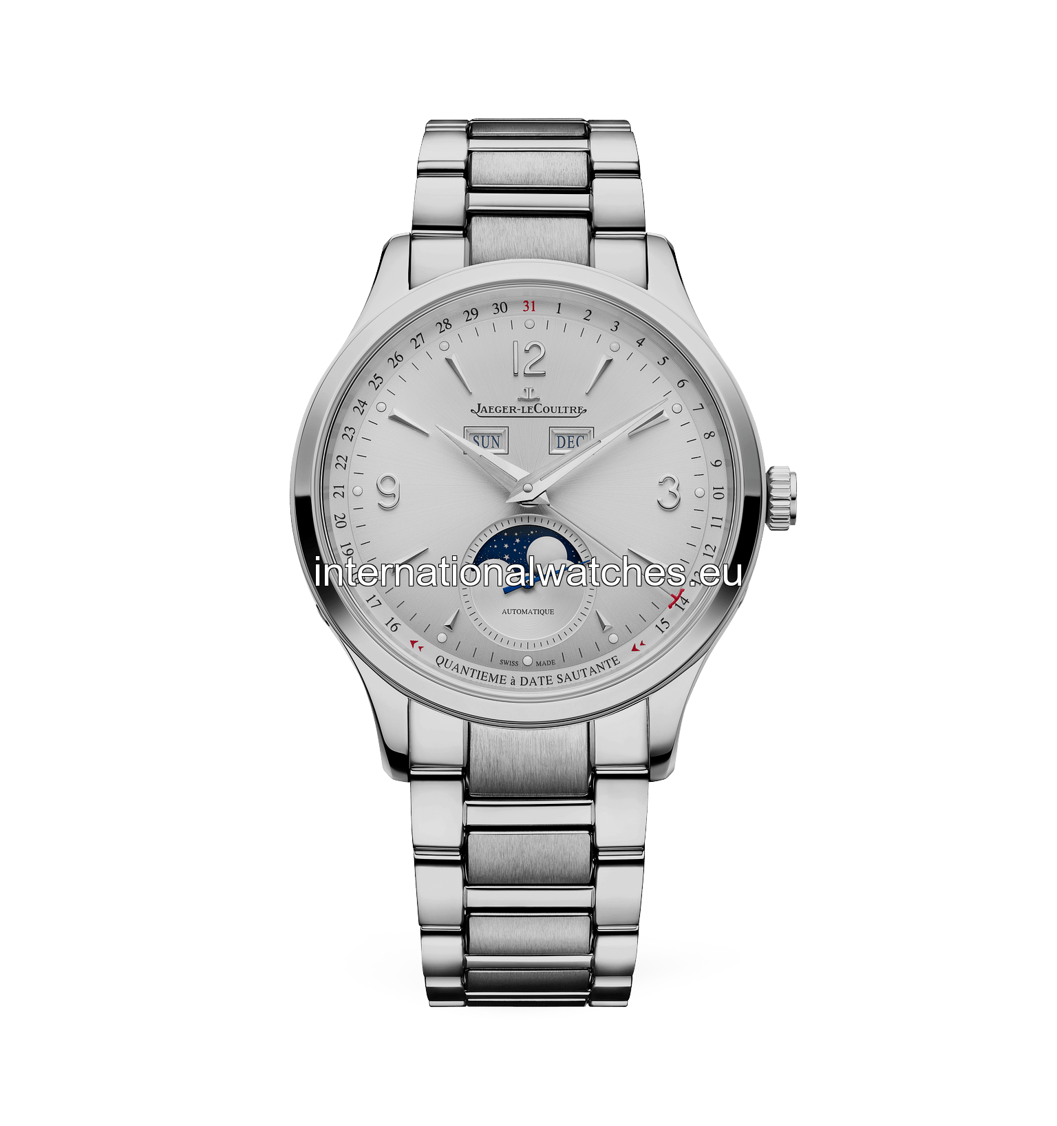 Featuring a 40-mm case, curved lugs, Dauphine hands and appliqué hour-markers, the new Master Control Calendar embodies the watchmaking spirit of this signature collection, achieving a subtle balance between technical prowess and contemporary aesthetics. On this model which boasts a complete calendar, the date indications (day and month) appear in blue in two apertures situated in the center of the dial, while the moon phase comes to life at 6 o'clock. Thanks to a new interchangeability system, the Master Control Calendar is available with two straps: One in stainless steel and the other in Novonappa® calfskin with a folding clasp. This duo of straps changes the look of the watch, effortlessly adapting from a casual look to a more sophisticated elegance.