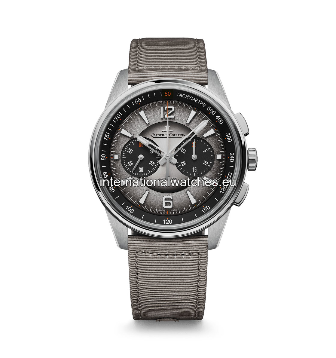 The Polaris Chronograph features a superb signature dial in lacquered grey. From the lightest to the darkest, the gradation of multiple nuances is achieved thanks to a process that consists of applying 35 layers of varnish followed by colored and transparent lacquer to the dial before the final step: polishing. In its 42 mm steel case, the dial has three levels of finishing: an internal opaline bezel, a grained circle for the hours and indexes, as well as a sunray-brushed center. Perfectly legible, the chronograph stands out for its iconic attributes: central second, tachymeter and 30-minute counter at 3 o’clock. Highlighting the Maison’s watchmaking expertise, its Jaeger-LeCoultre Calibre 761 features an integrated chronograph mechanism, equipped with a column-wheel with vertical clutch. The Polaris Chronograph promises 65 hours of power reserve - very welcome for a watch built for adventure. Graced with sporty and functional elegance, it comes with a beige fabric strap and another in black rubber.