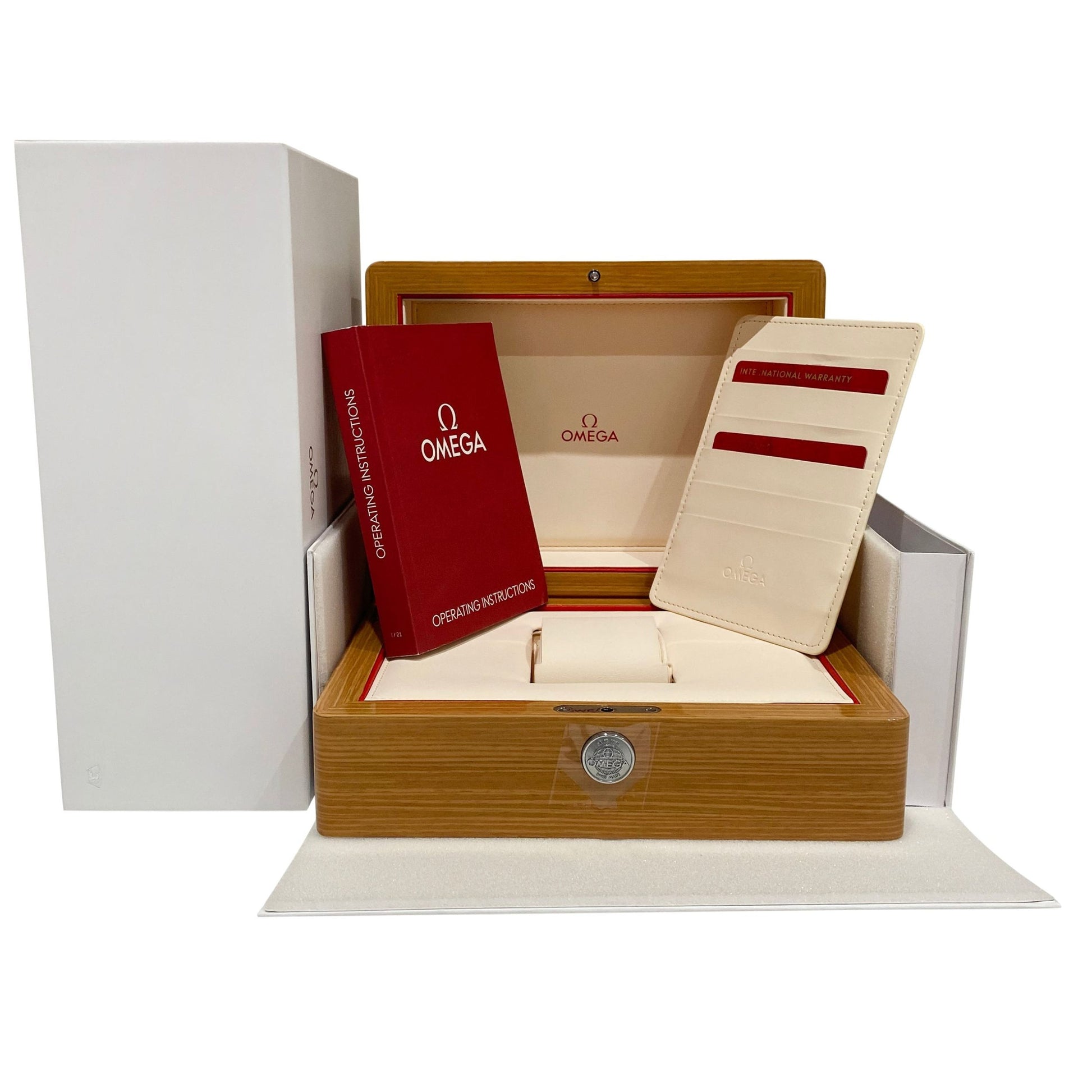 This model, with its scratch-resistant sapphire crystal, features a blue ceramic dial with Arabic numerals and a date window at the 3 o’clock position. The blue ceramic unidirectional bezel with OMEGA Liquidmetal™ diving scale is mounted on a 43.5 mm stainless steel case.